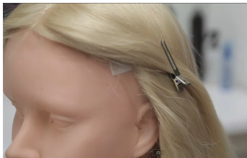 4. Remove the center-marking clip. Keep the hair clipped back, adjusting the clips as necessary.