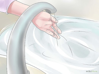C. after washing , put conditioner in another container of clean warm water. keep the hair in it for 5 minutes, rinse it with water, and remove the water with a clean towel .