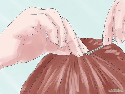 1. After brushing the wig, gather all the hair except the bottom section, which lies directly over your neck, and pin up.